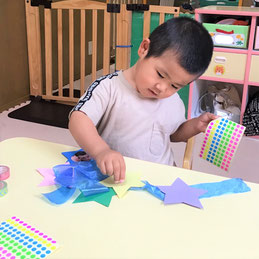 「せんせー、みてみて、いっぱい貼れたよ!」