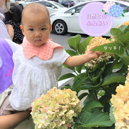 保育園の前を先生と一緒にお散歩しました。6月のお花アジサイもそろそろ見納めの時期ですね。
